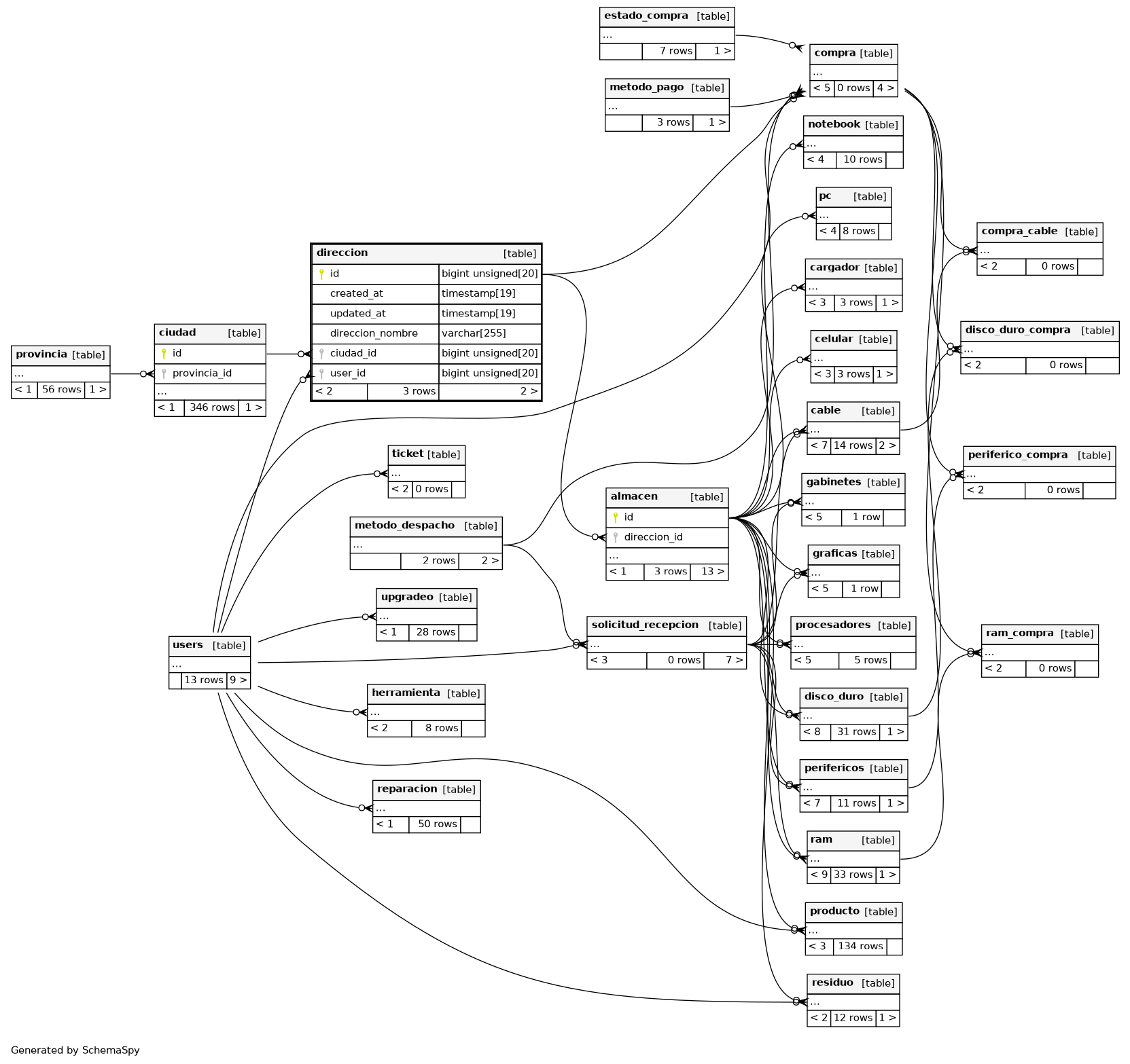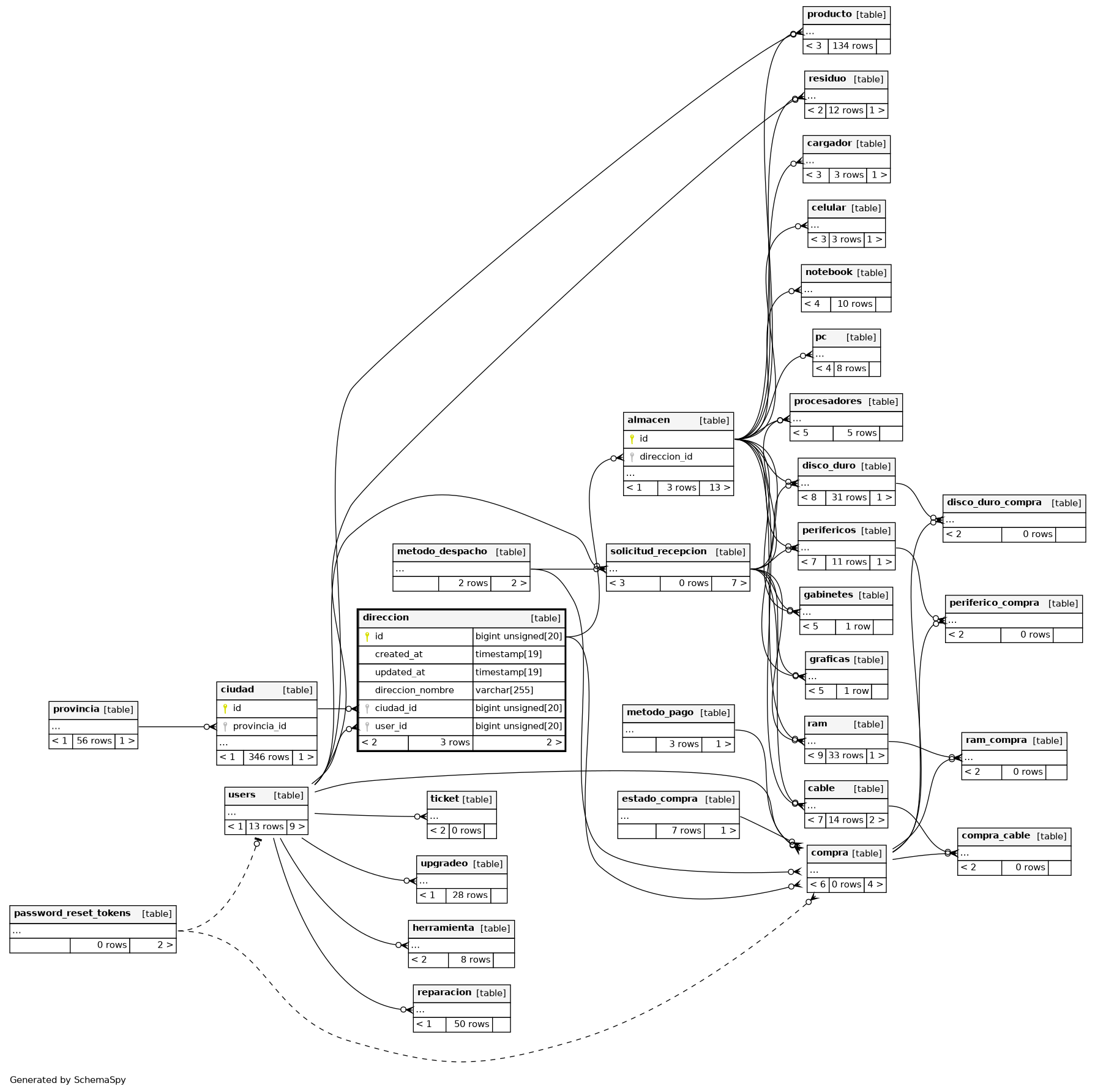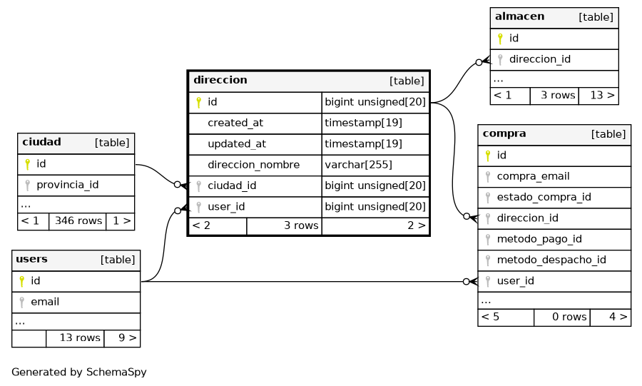 | direccion_user_id_foreign | Performance | Asc | user_id |