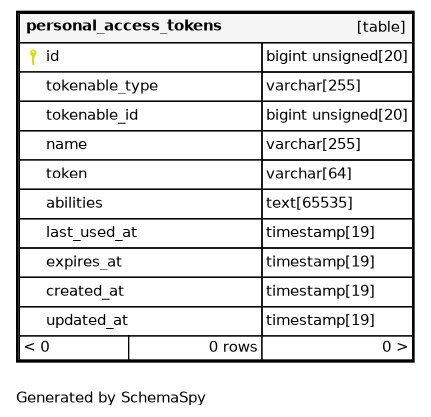 | personal_access_tokens_token_unique | Must be unique | Asc | token |